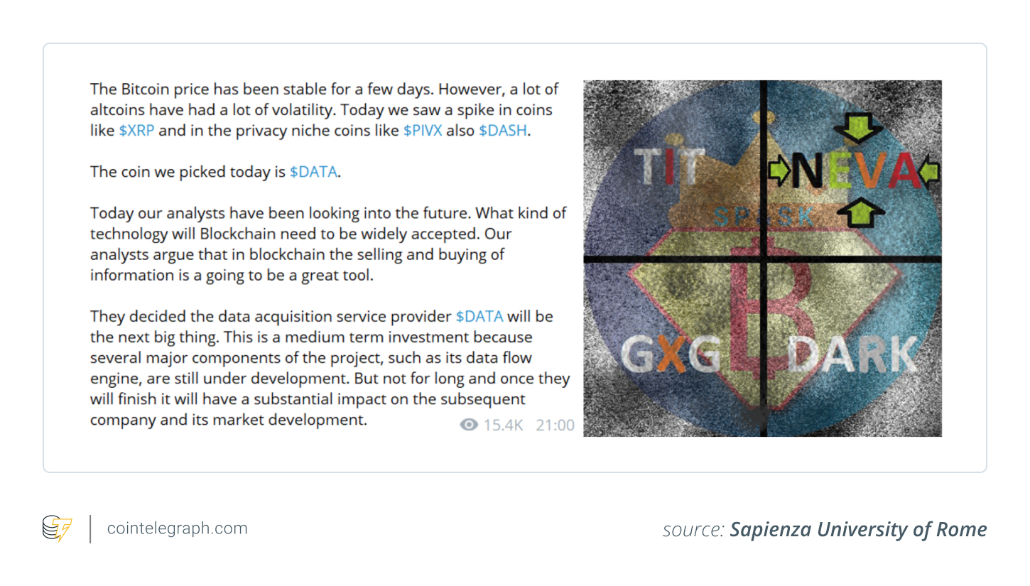 对数千种加密资产交易相关文本的大规模分析: 监管方希望通过结合市场数据,考察异常宣传活动或舆论高峰,与价格波动之间的互动关系。
