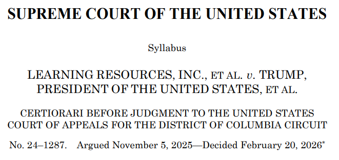 美国最高法院在Learning Resources诉特朗普案中裁定,部分关税超出了总统权限。