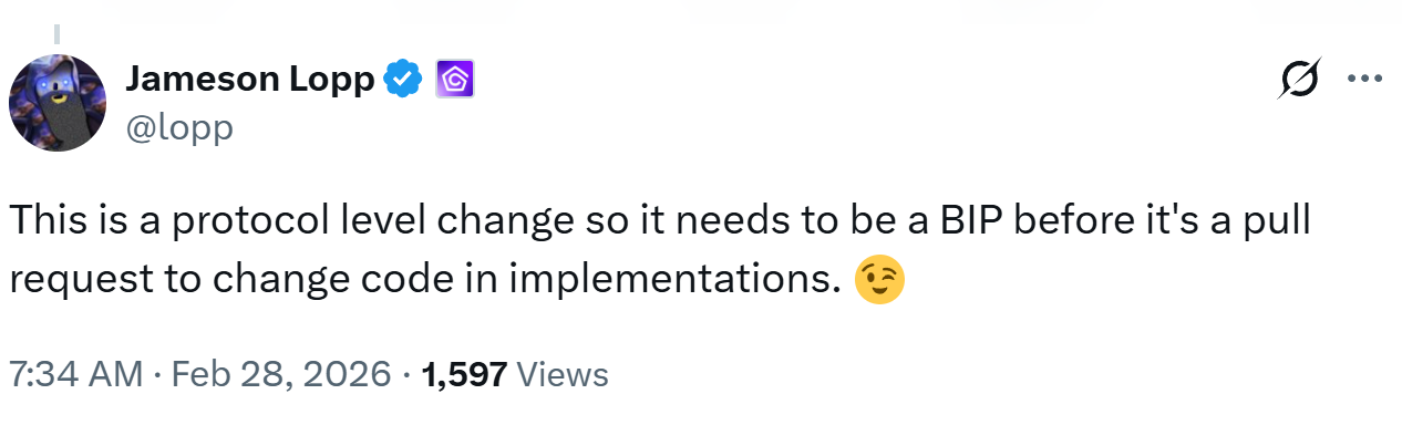 “我必须坦率说明:这就是一次硬分叉,它会让此前无效的交易变得有效。所有节点在激活高度前都需要升级。我并不打算掩饰这个事实,也不会把它包装成别的东西。”他补充道。