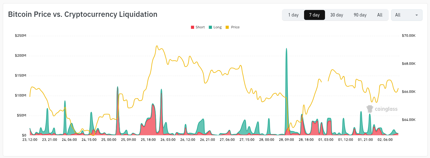 周末期间,加密市场波动被压制,传统金融市场恢复后,比特币将6.5万美元视为支撑位。