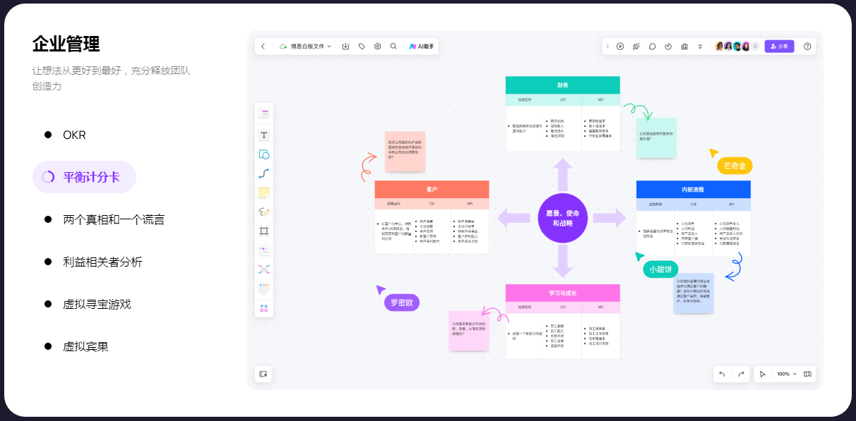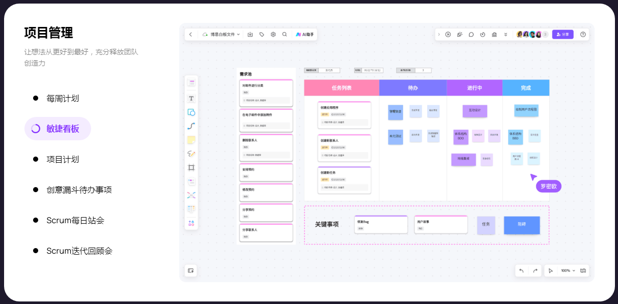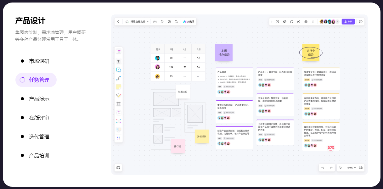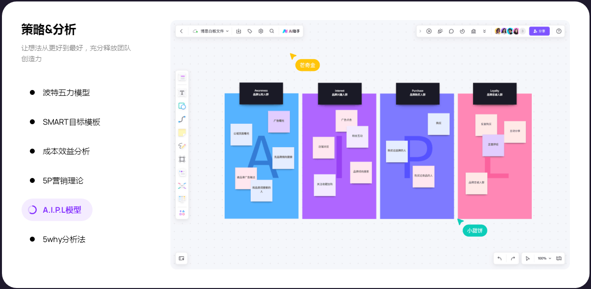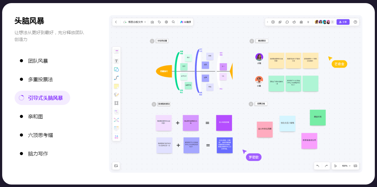 boardmix在线白板,一个点燃团队协作和激发创意的空间,集AIGC,一键PPT,思维导图,笔记文档多创意表达能力于一体,将团队工作效率提升到新的层次。